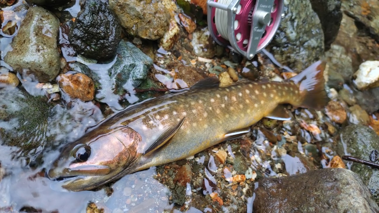 フライを目の前に流すとあっさり釣れました。